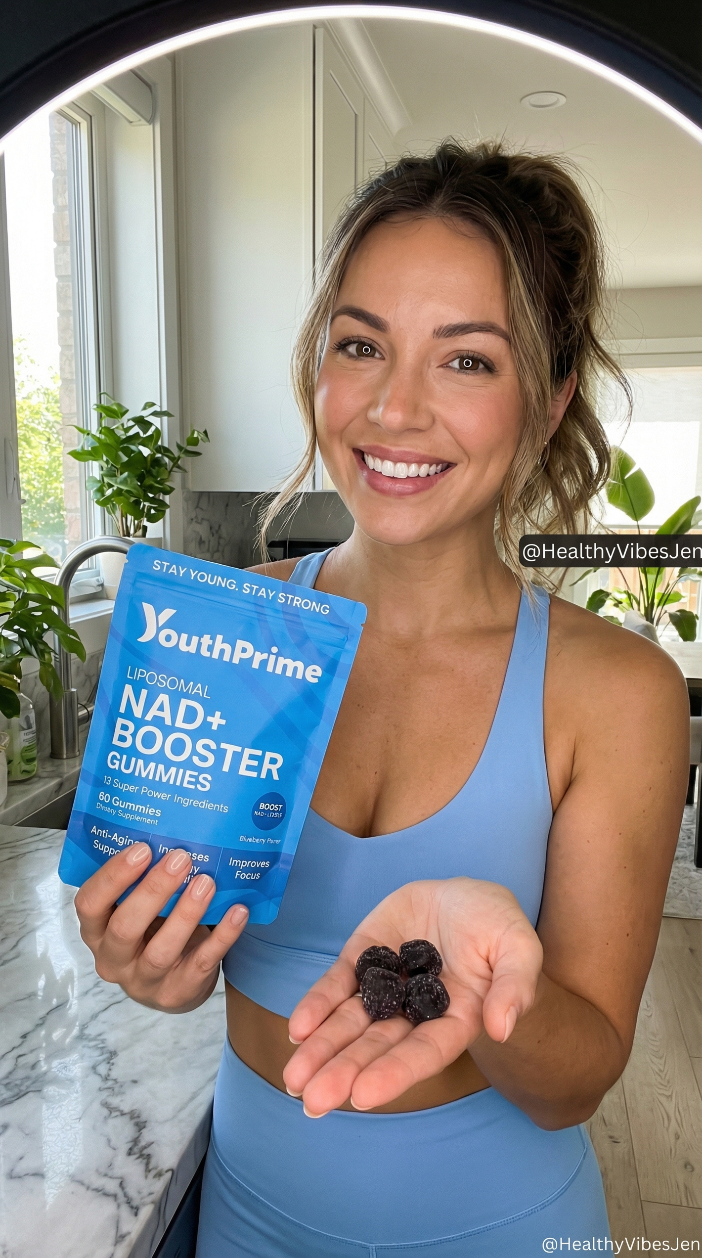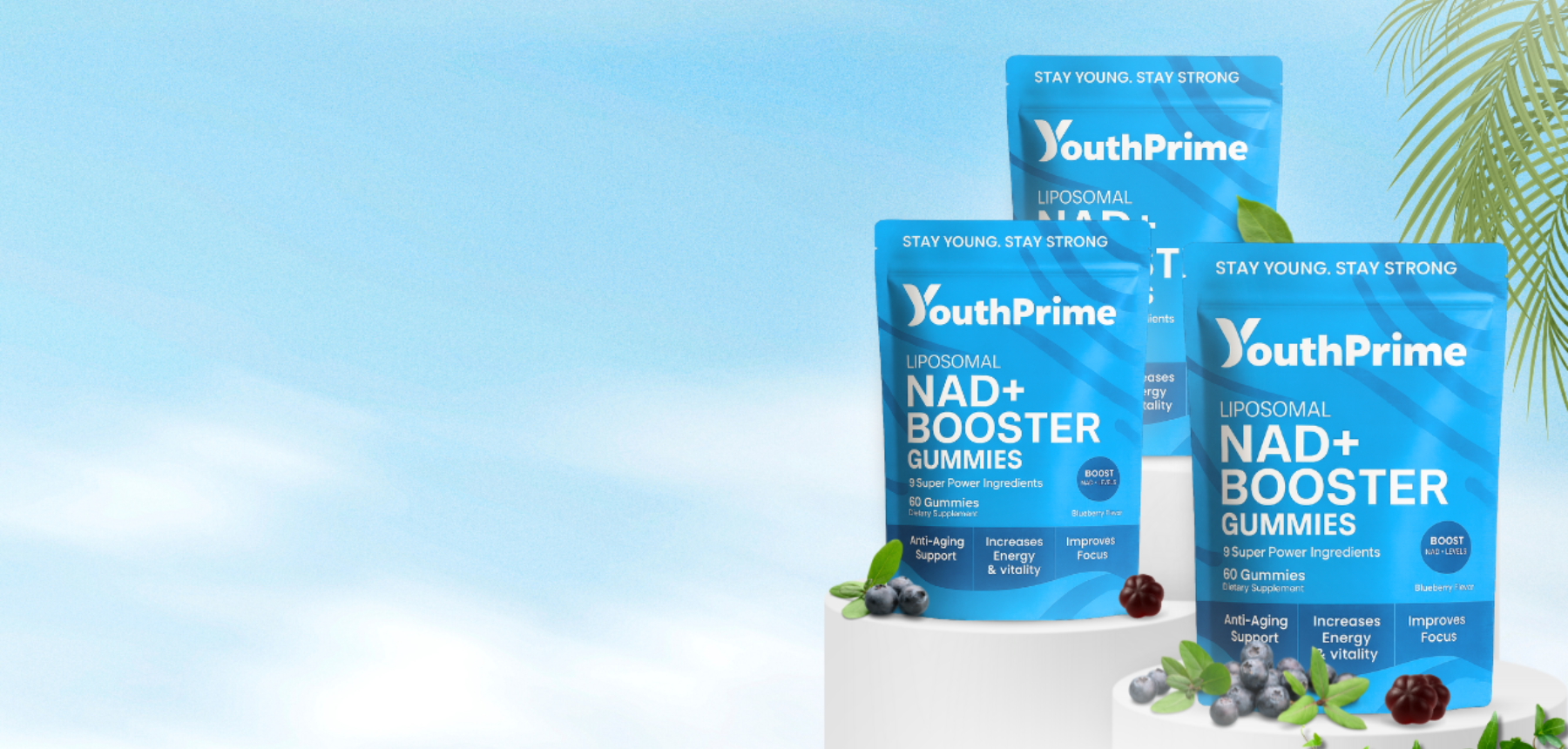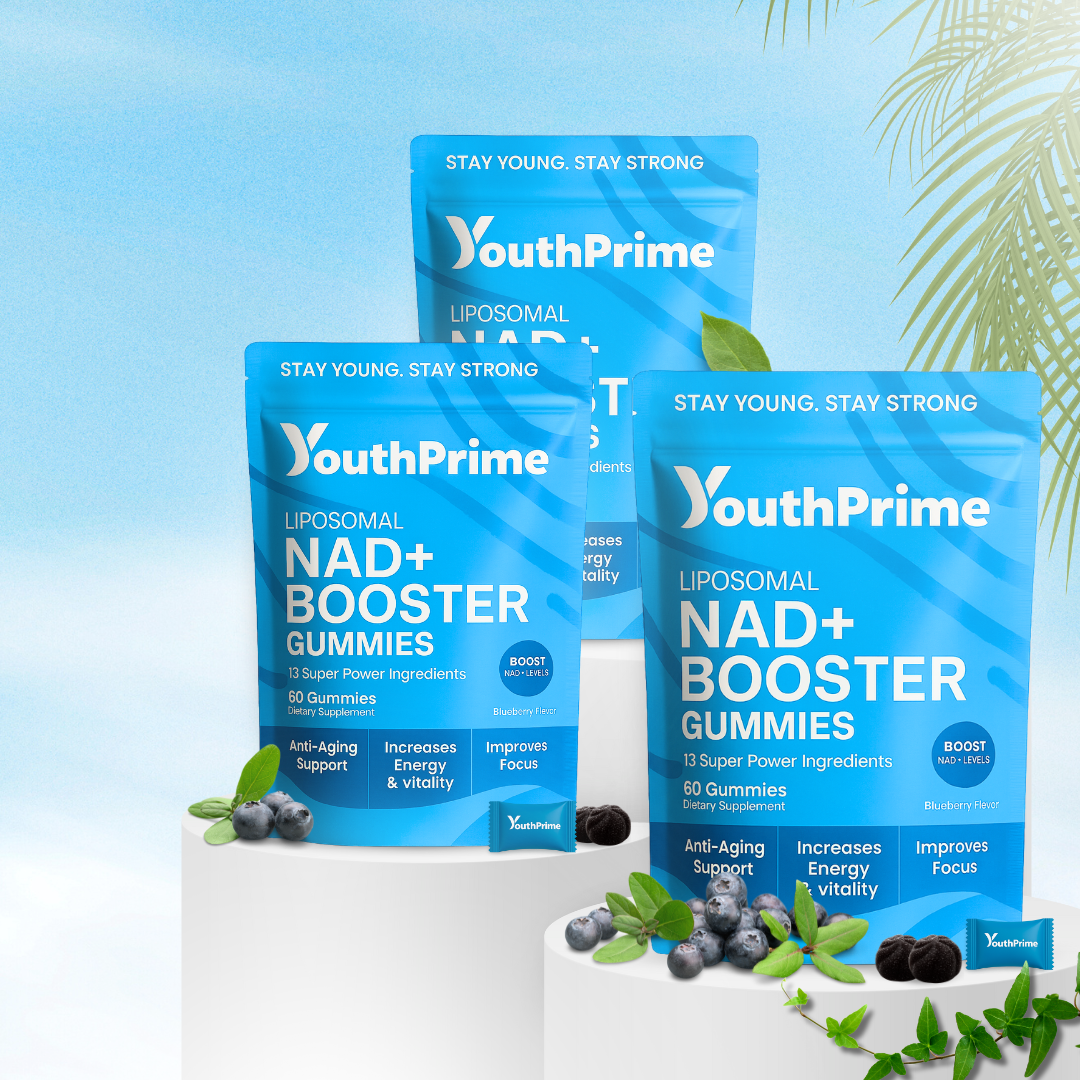 YouthPrime’s NAD⁺ Booster Gummies combine 9 scientifically backed ingredients—including Liposomal NAD⁺, Collagen, Hyaluronic Acid, and Vitamins C, B6, B12—into one delicious, easy-to-absorb gummy. Each bite delivers a synergistic boost to cellular energy, glowing skin, and sharper focus, making it the most advanced formula ever designed for youth from the inside out.
